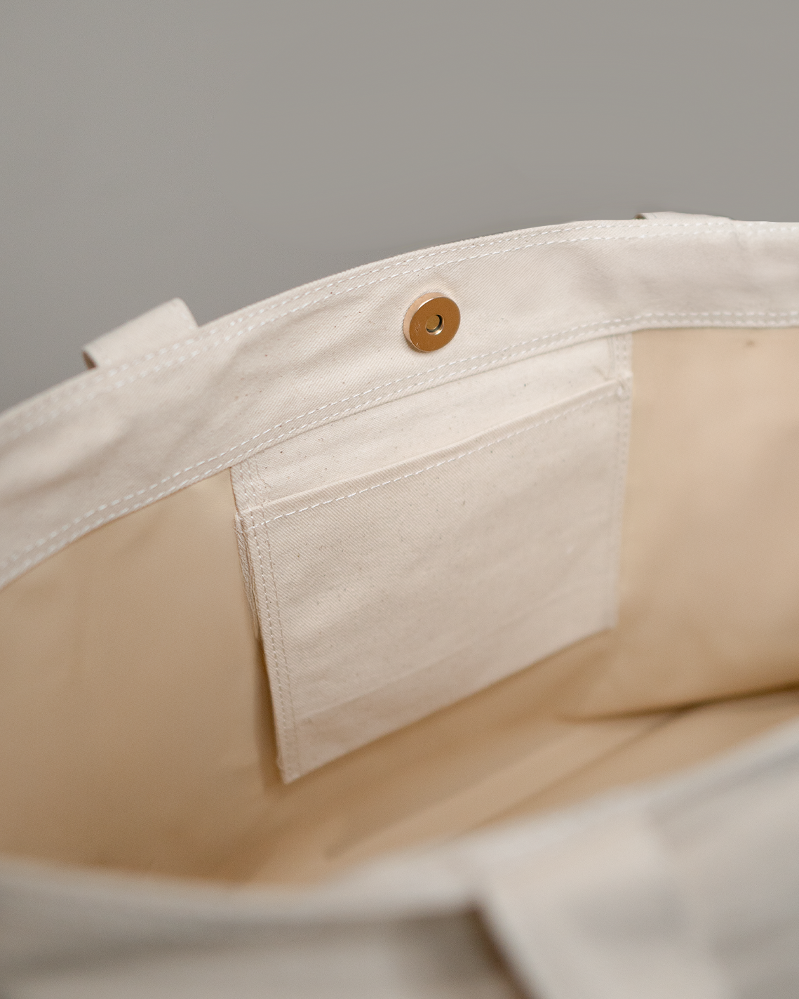 - Outer (Bagian luar): 100% cotton canvas for durable, classic texture.
