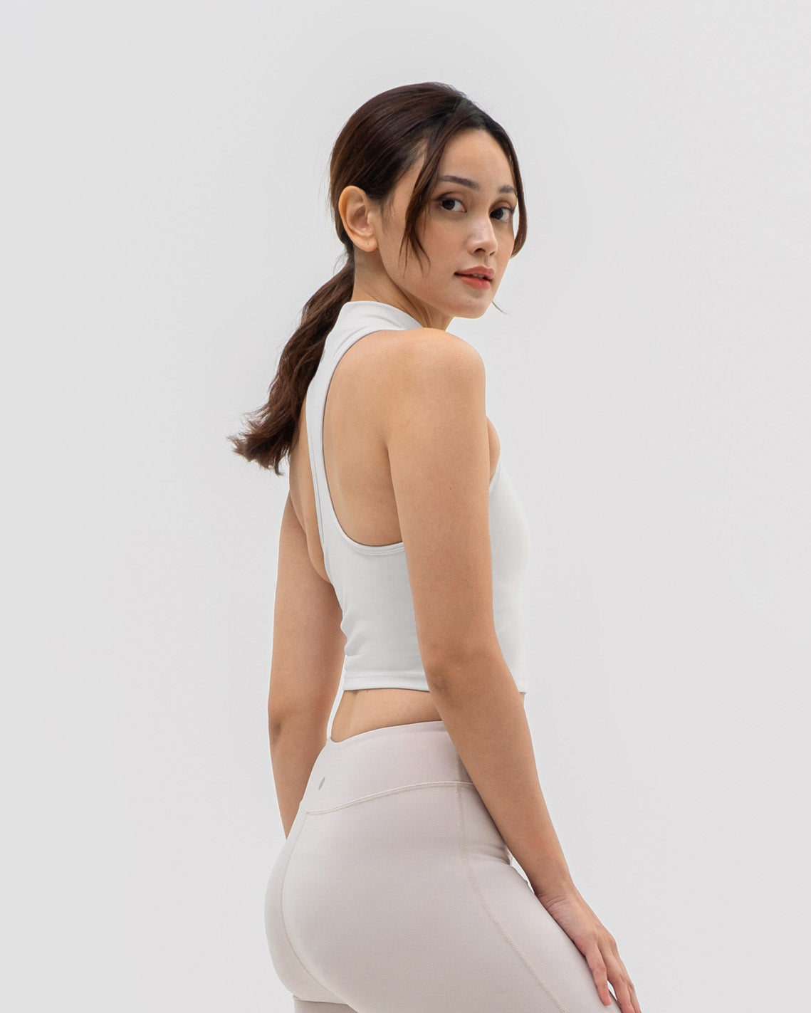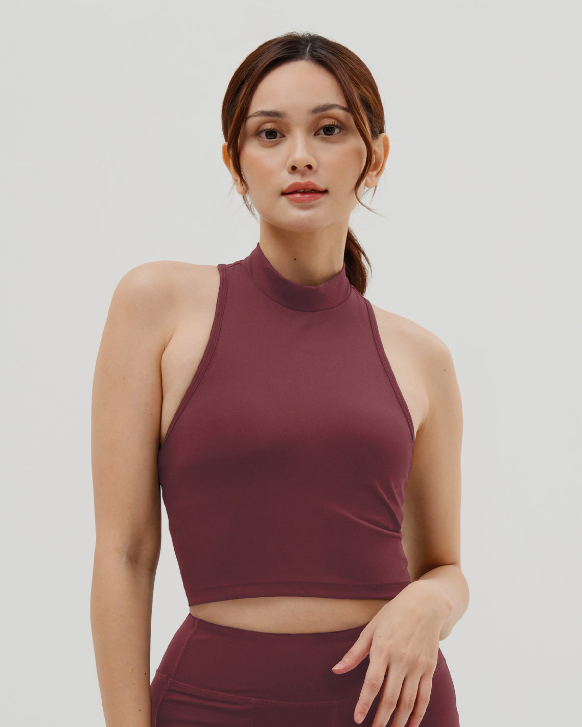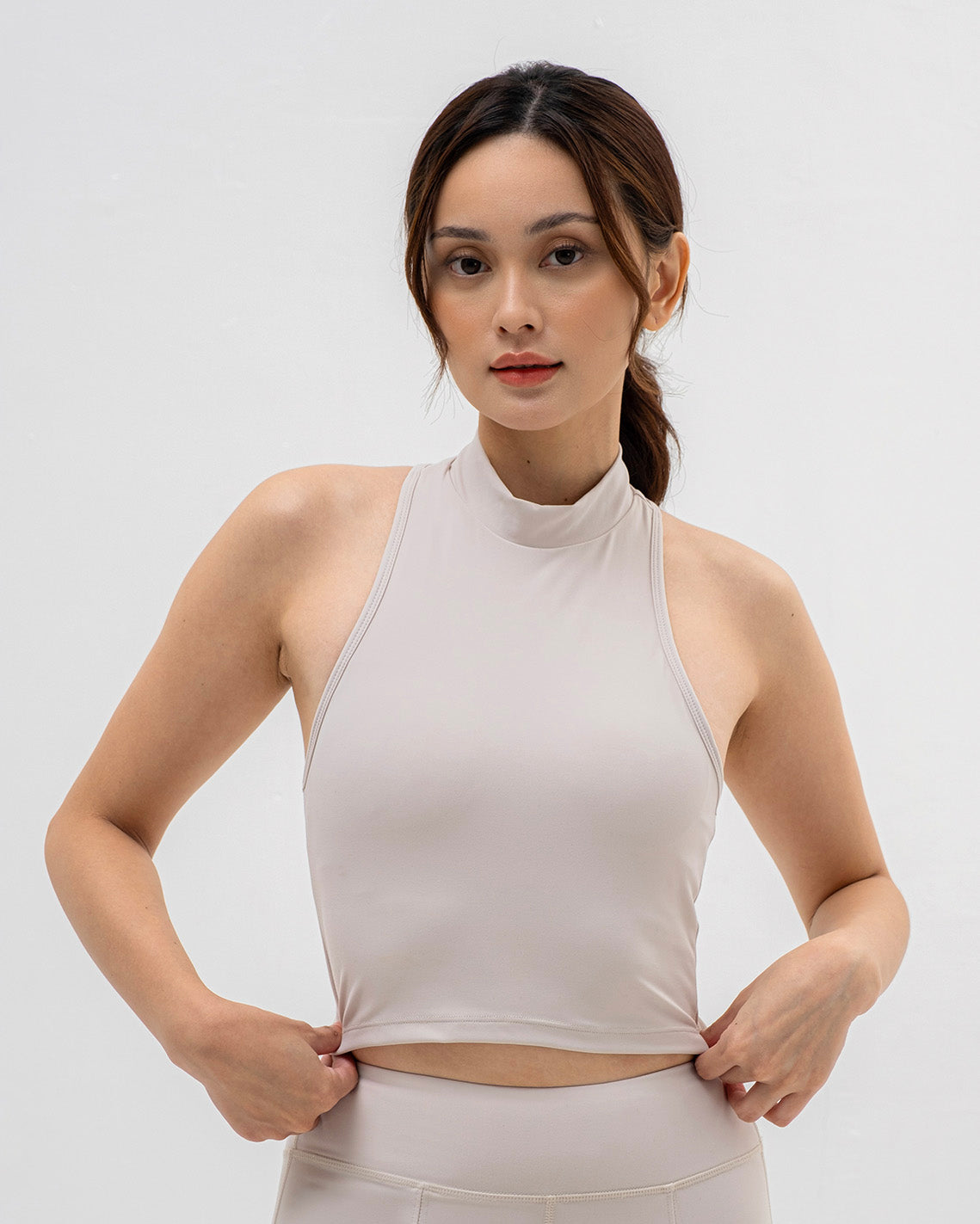 - Mockneck tank with racerback design