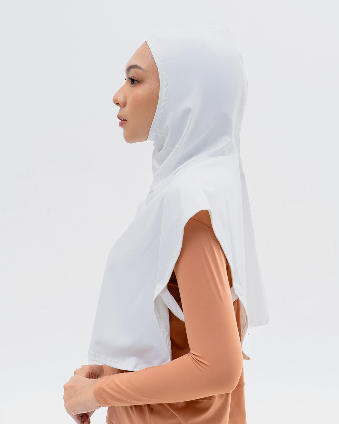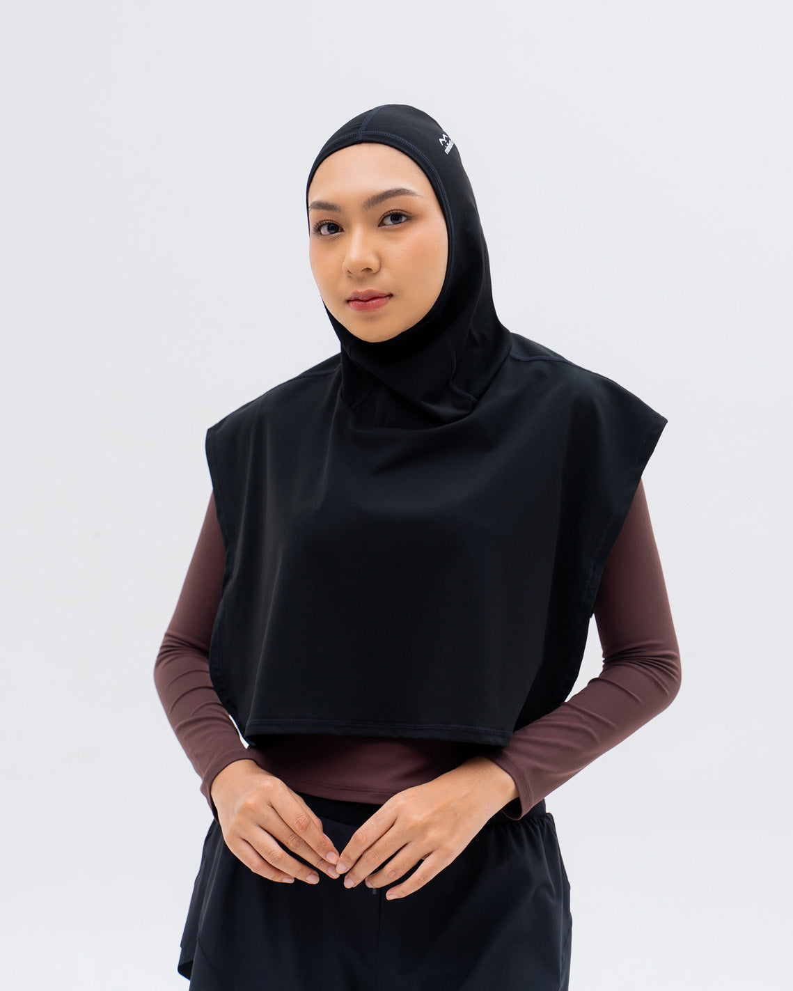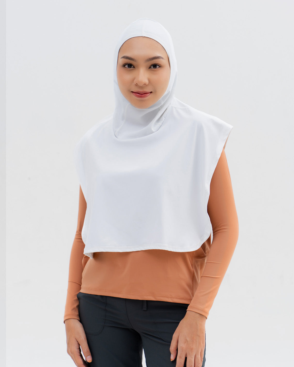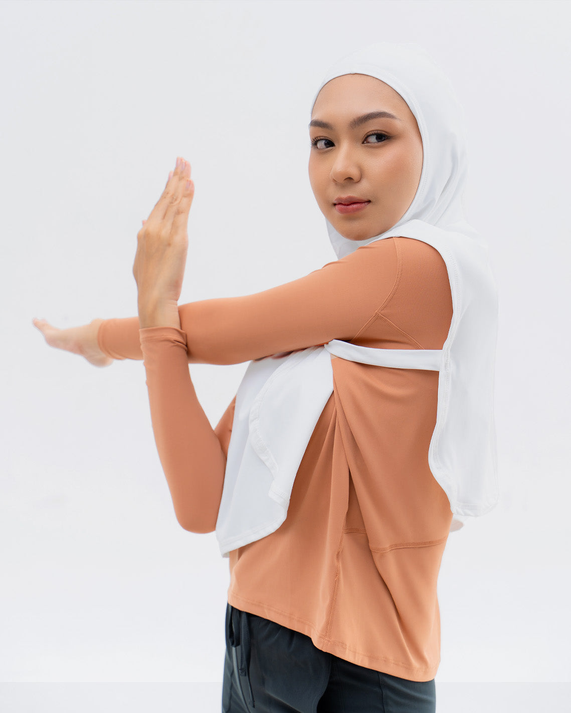 - Secure Arm Loop: Innovative detail that attaches to the arms to prevent the hijab from shifting during workout.